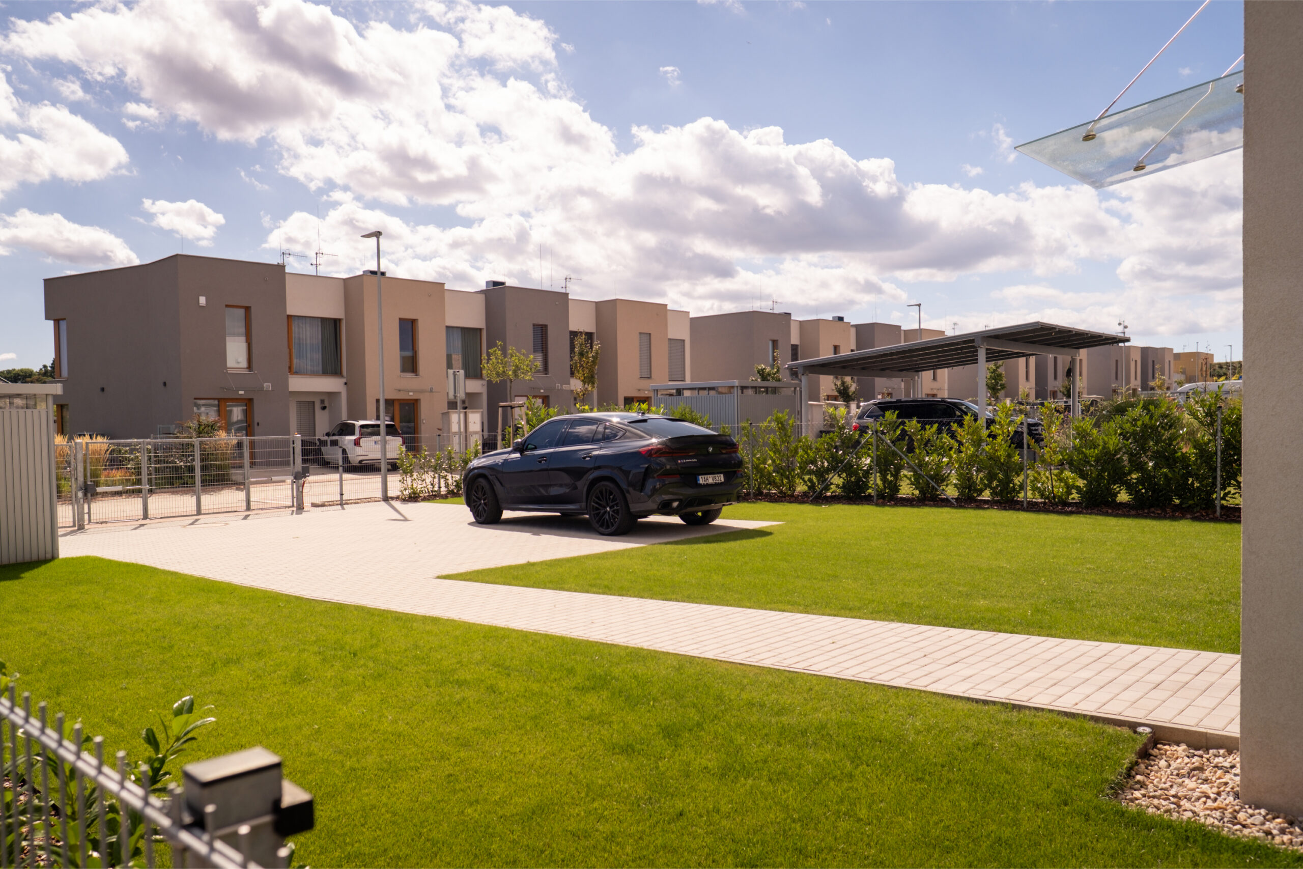 Komfort i po nastěhování – trvalá přítomnost developera na místě, údržba areálu (sekání trávy, úklid sněhu, čisté komunikace) a spolehlivý servis.